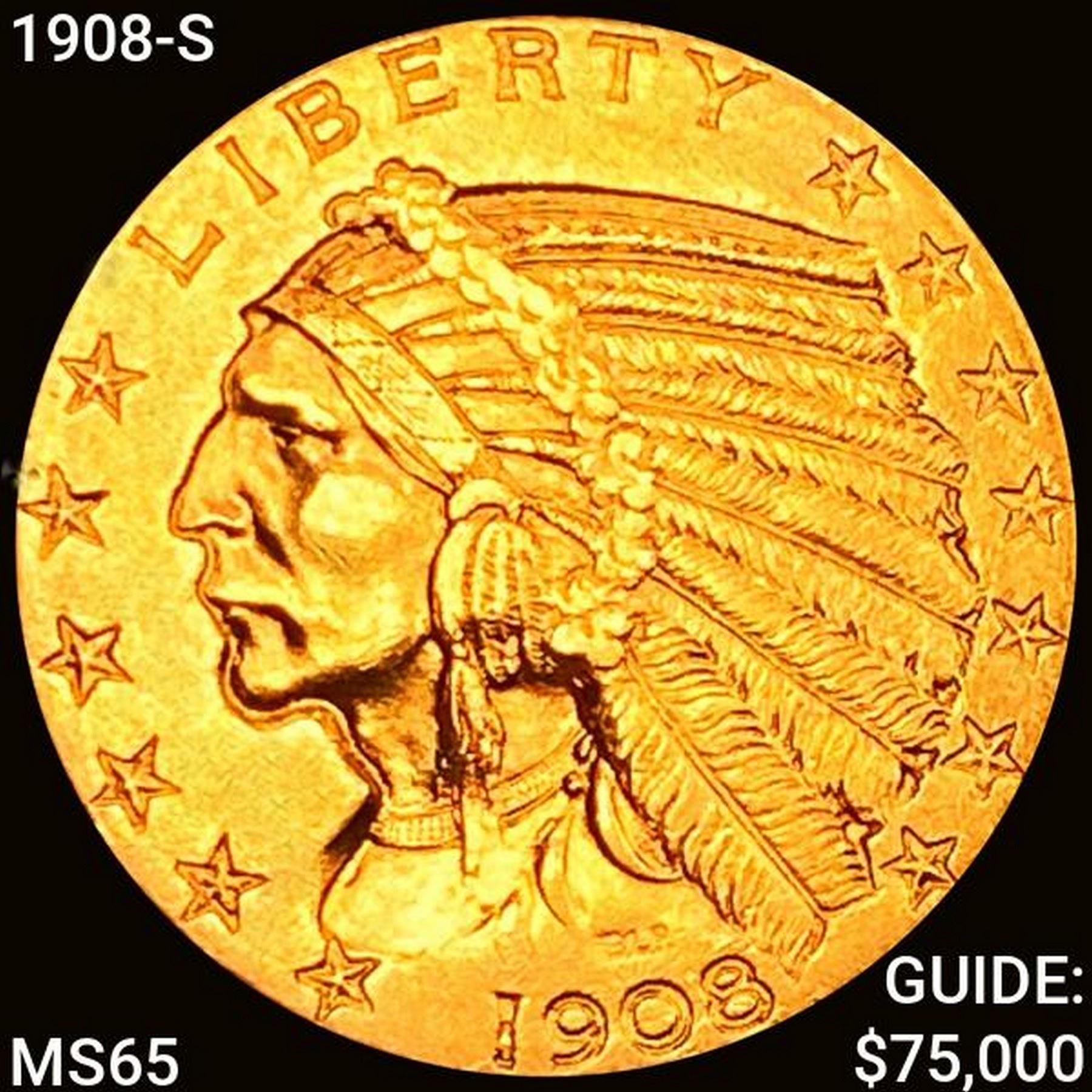 1908-S $5 Gold Half Eagle GEM BU