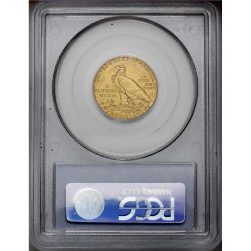 <B>1908-S<$5> MS64 PCGS.</B></I> While a legitimately scarce issue, the 1908-S is actually more plentiful than the other S-Mint Indian half eagles in higher grades. This piece has the soft frosted appearance seen on so many 1908-S fives, and the strike is sharp throughout. There are no singularly mentionable abrasions on either side. Attractive tan-golden luster overlays the surfaces.<BR><I>From The Sandia Mountain Collection.</B></I>