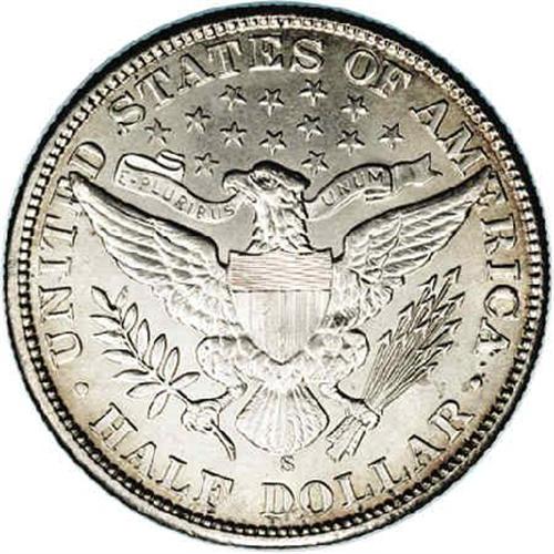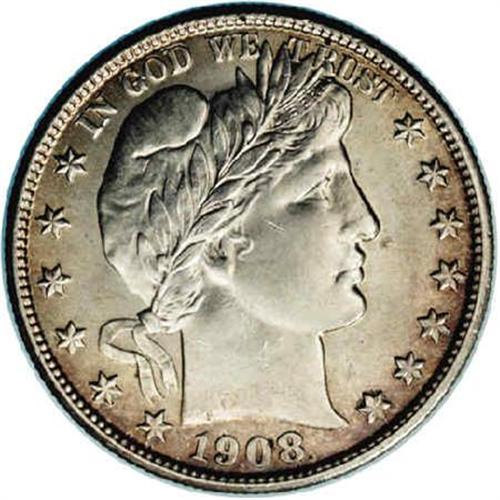 <B>1908-S<50C> MS63 NGC.</B></I> A crisply struck and lustrous beauty that appears to be high end for the grade, despite a couple of unimportant ticks on the portrait. Tan and rose hues gradually cede to brilliant centers. The 1908-S follows the pattern of most Barber Half issues, available in Very Good and lower grades but very scarce above Fine. However, aside from the 1892-O Micro O, an Uncirculated collection of Barber Halves remains achievable by the advanced numismatist. Population: 5 in 63, 18 finer (9/05).