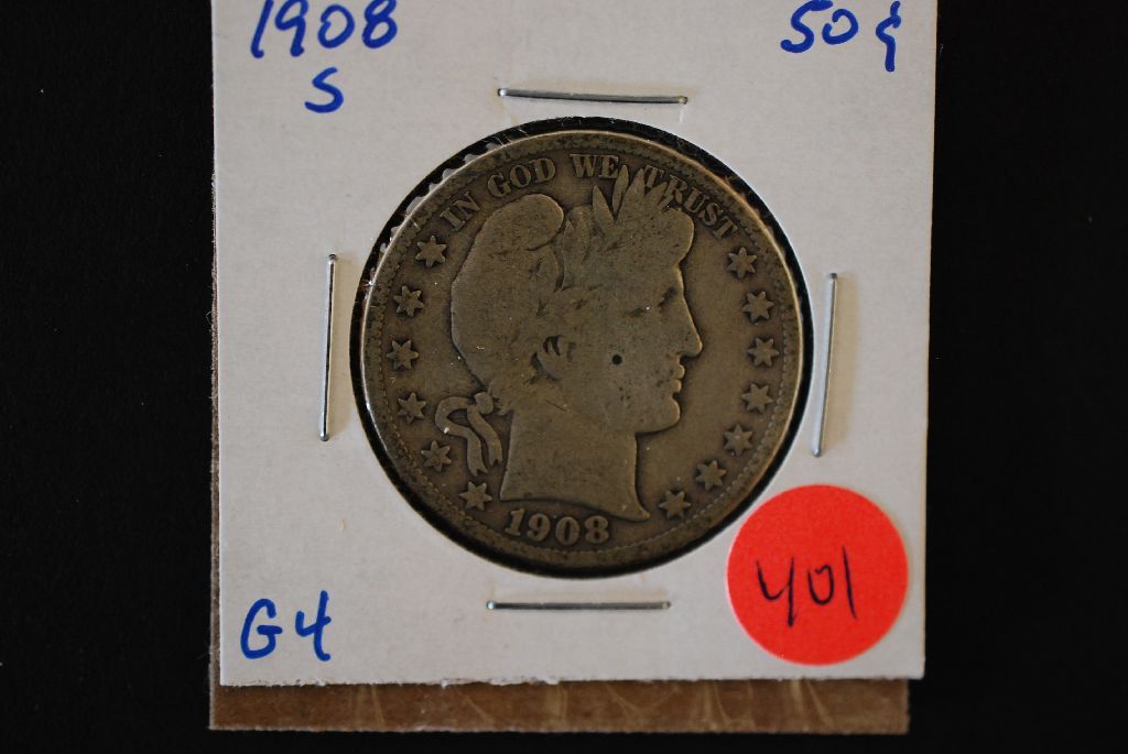 1908-S Barber Half Dollar; G4; EST. $10-20