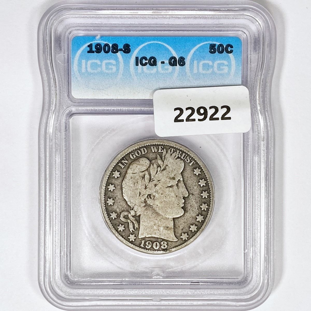 1908-S Barber Half Dollar ICG G6