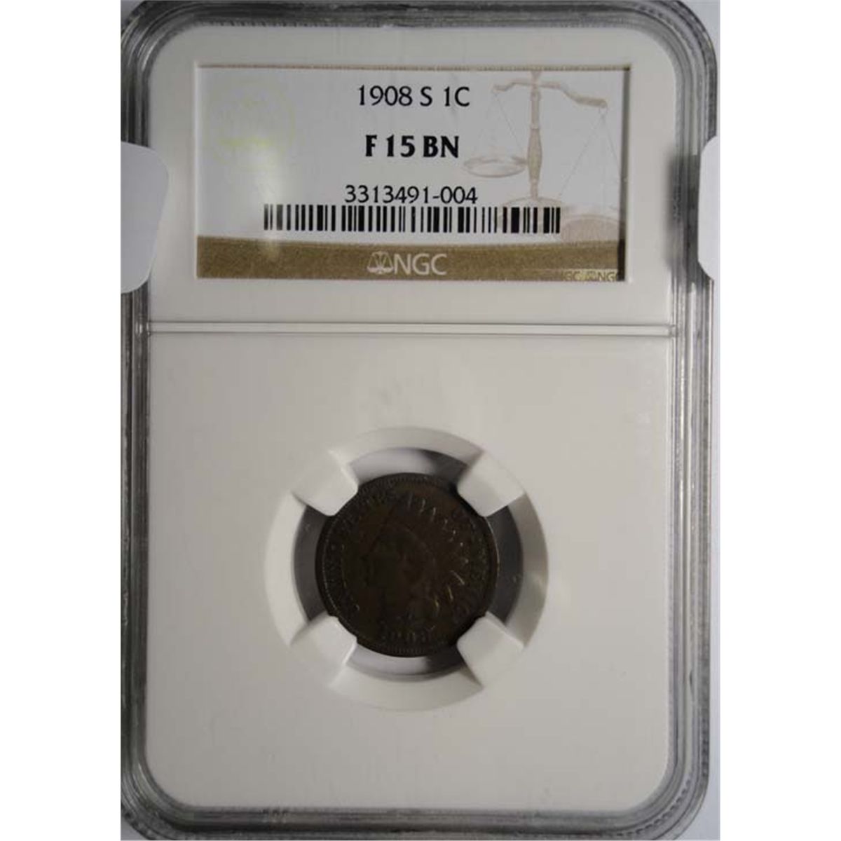 1908-S INDIAN HEAD CENT NGC F 15 BN
