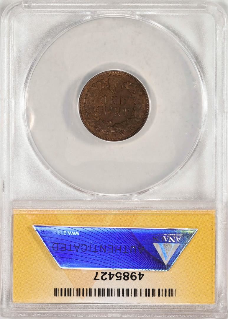 One 1908-S Indian Head Cent Coin ANACS EF40. ANACS Certified.