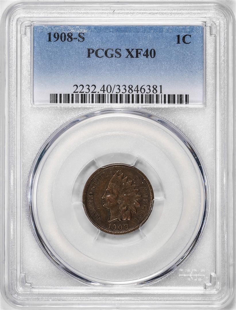 One 1908-S Indian Head Cent Coin PCGS XF40. PCGS Graded.