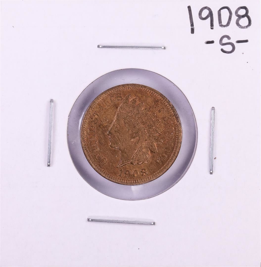 One 1908-S Indian Head Cent Coin.