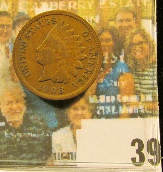 1908 S Indian Head Cent, Fine.