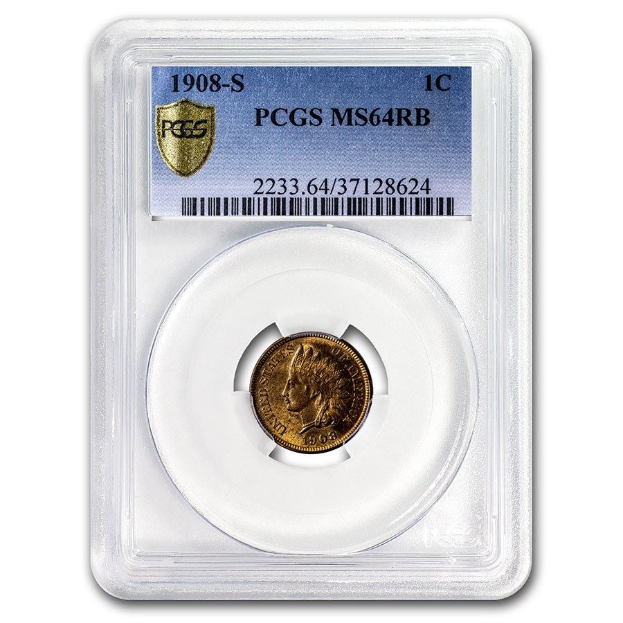 1908-S Indian Head Cent MS-64 PCGS (Red/Brown)