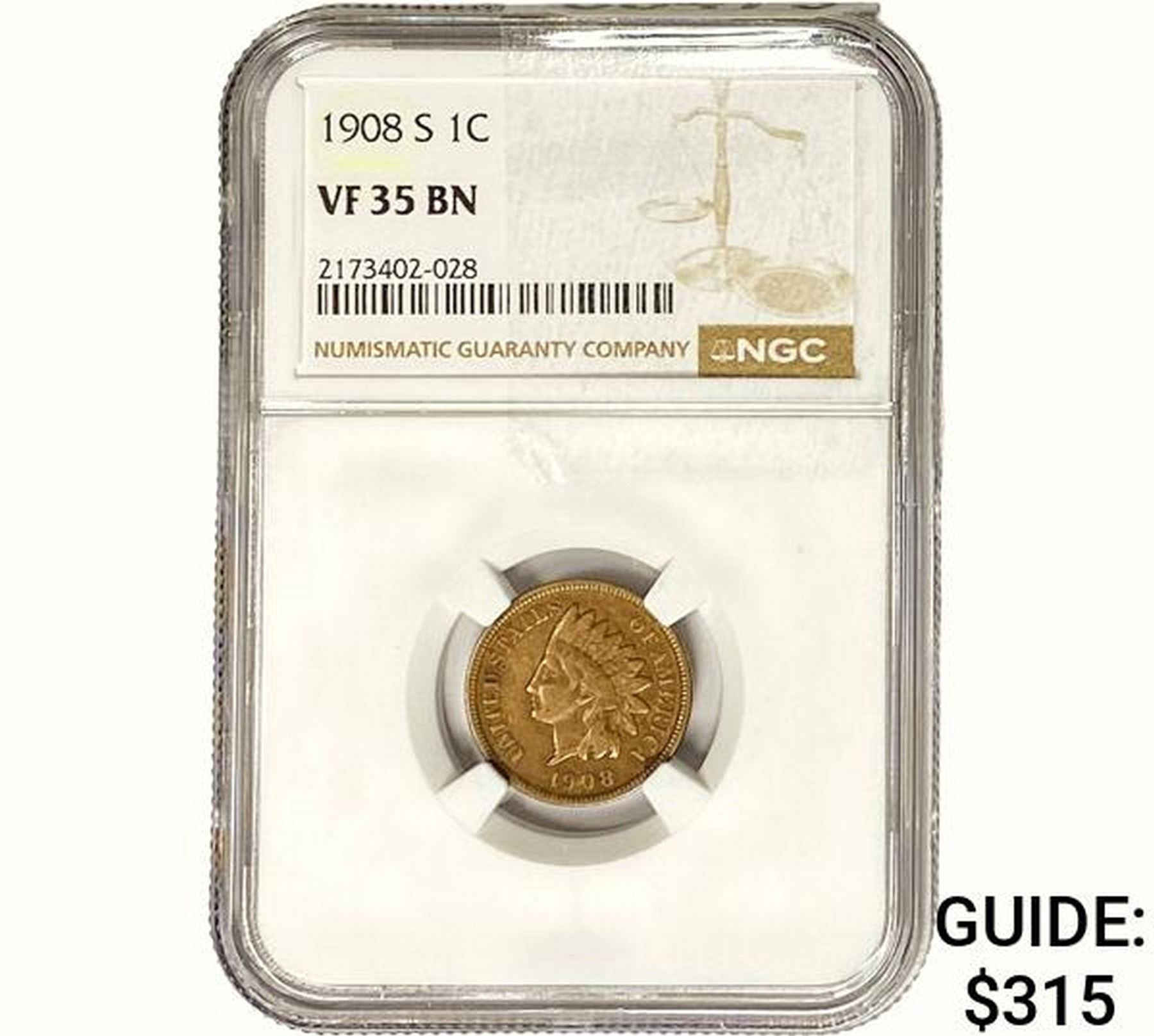 1908-S Indian Head Cent NGC VF35 BN