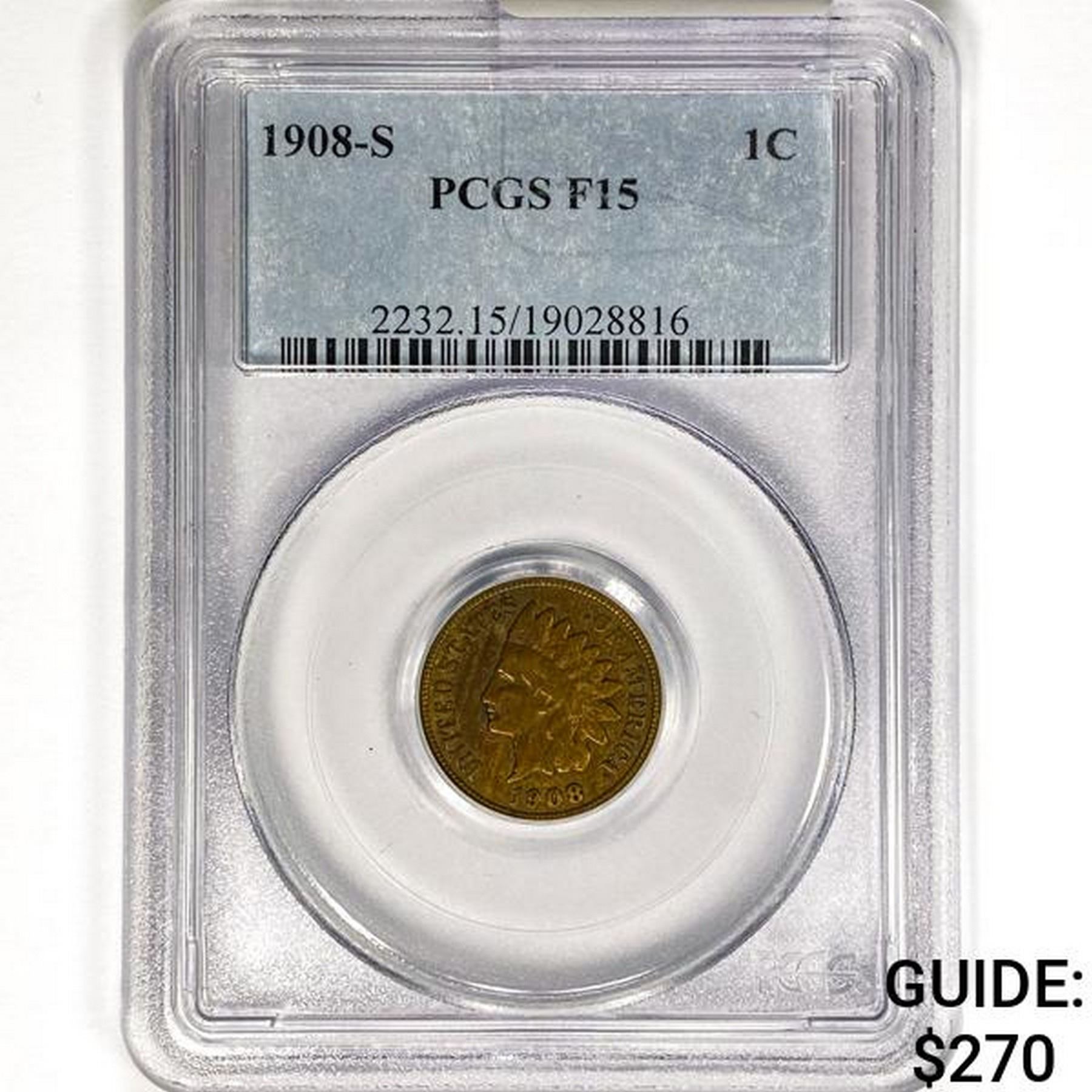 1908-S Indian Head Cent PCGS F15