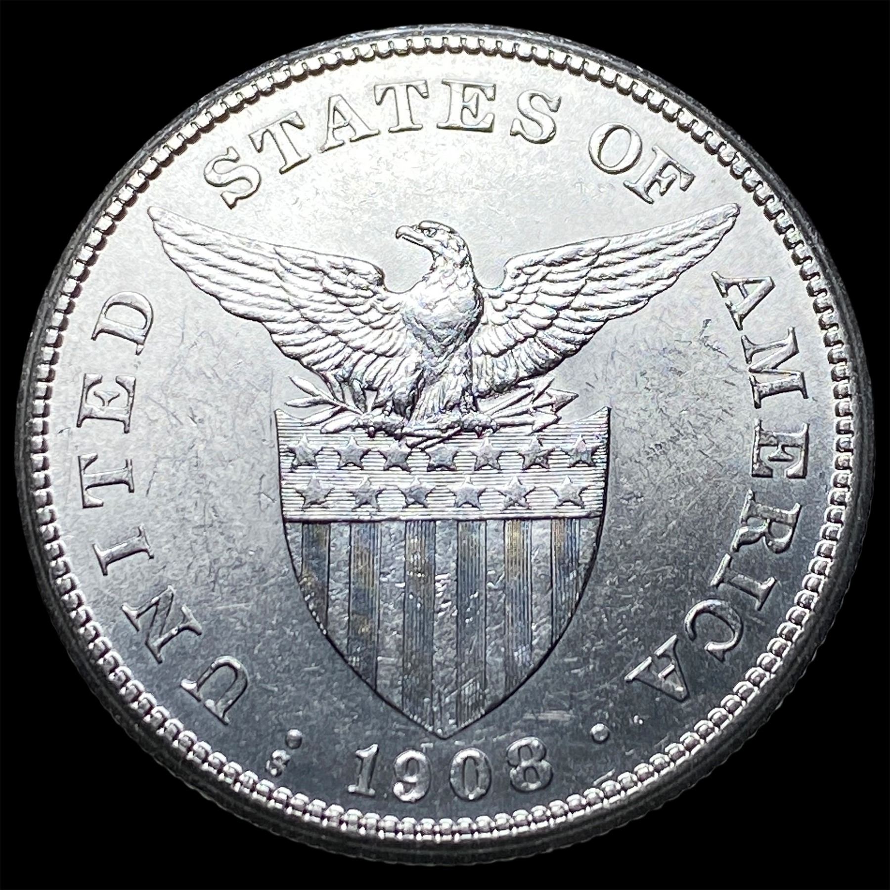 1908-S Silver One Peso Philippines UNCIRCULATED