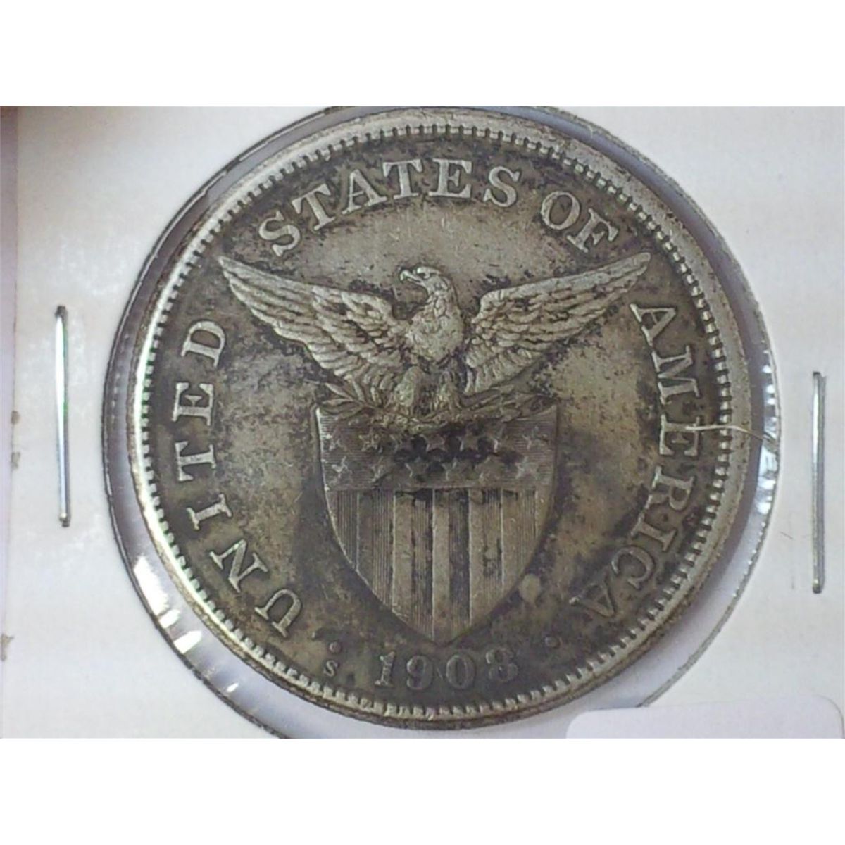 1908-S US/PHILIPINNES PESO SILVER .5144 OZ. ASW