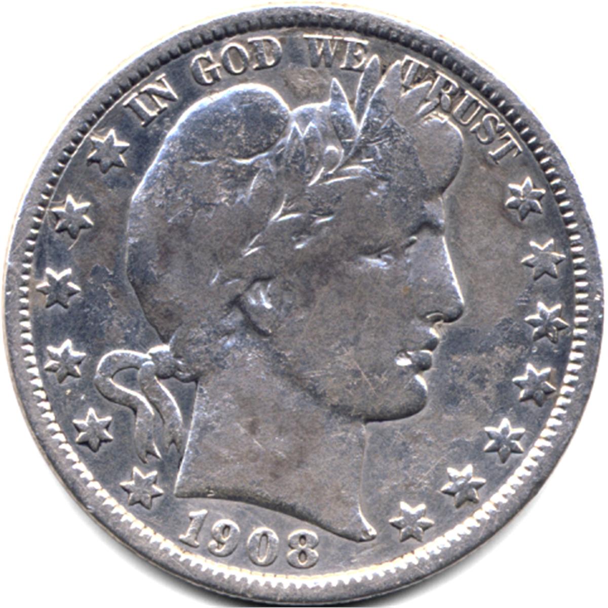 1908 SILVER BARBER HALF DOLLAR-CIRC