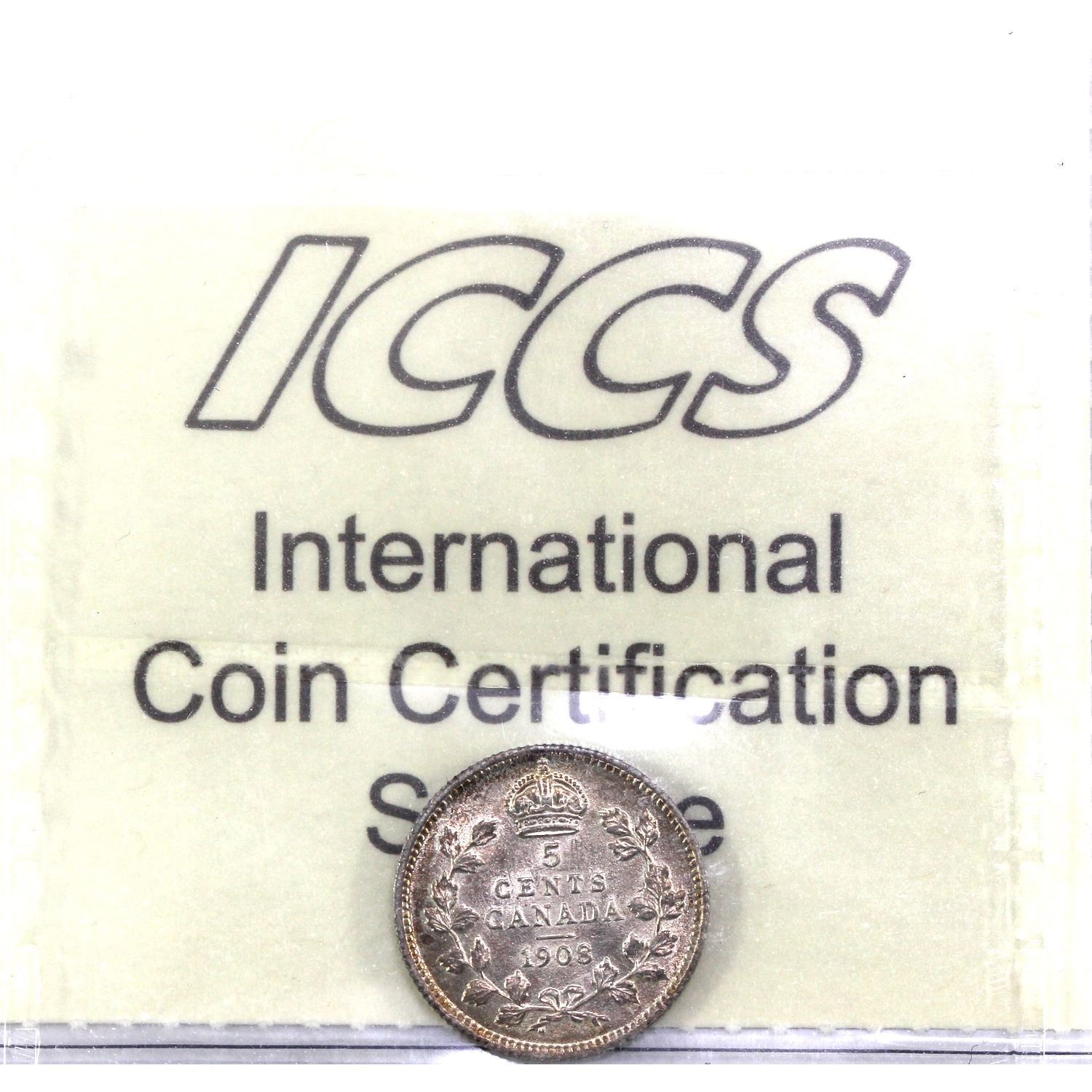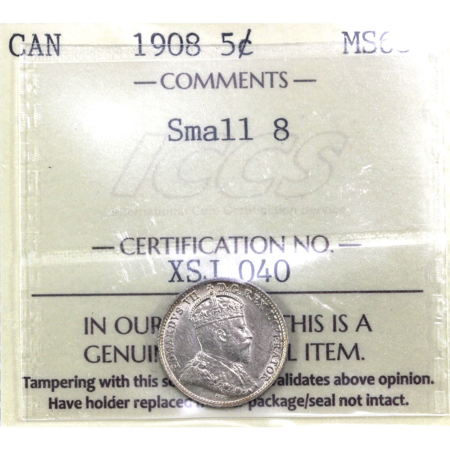 1908 Small 8, Canada 5-cent ICCS Certified MS-63