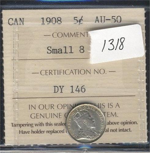 1908 Small 8 ICCS AU50 light gold , a nice example.