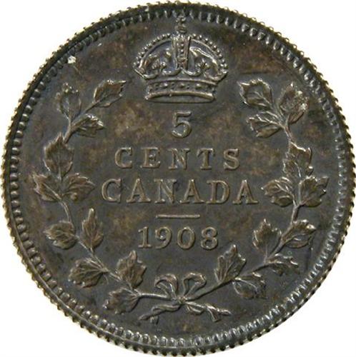 Canada 1908 Small 8 Specimen Set in Original Case, CH-6c. The One Cent was lacquered, probably at the Mint, and is over 95% red and is Very Choice. The silver pieces are toned in light-medium golden browns and slates and have some light contact marks. The 5 Cents is the Small 8 variety and is a newly discovered example