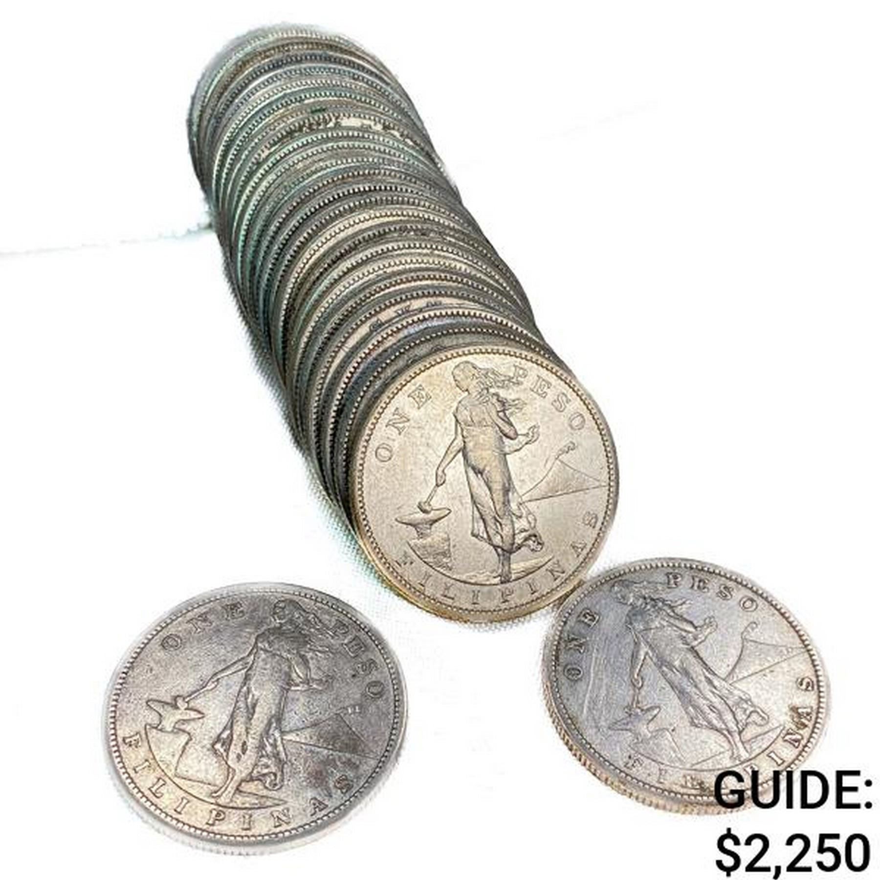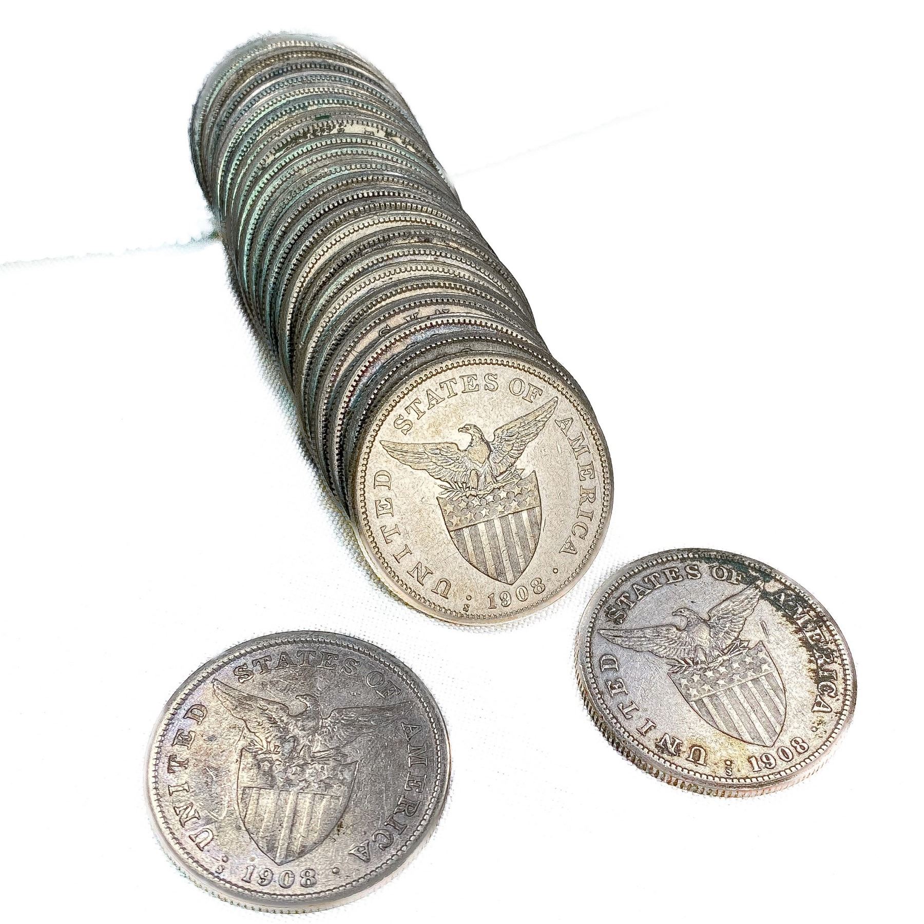 1908 US Philippines Silver Peso Roll (25 Coins)