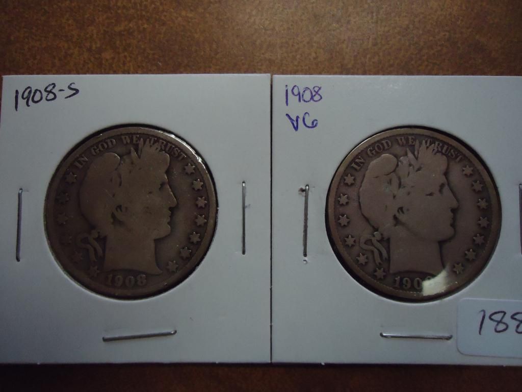 1908 VG & 1908-S BARBER HALF DOLLARS