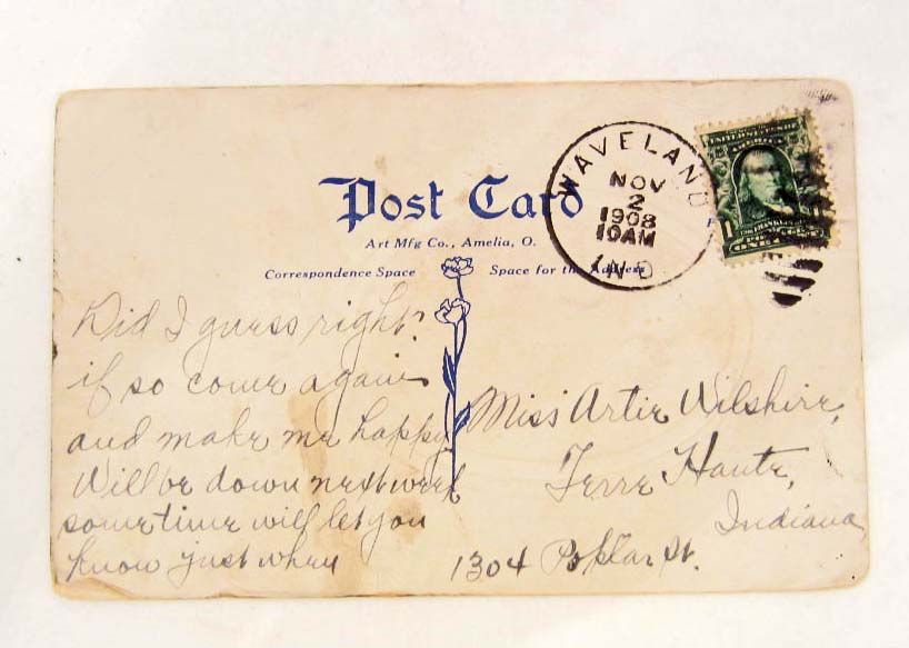 Postcard has been mailed and has a postmark of Nov 2, 1908.