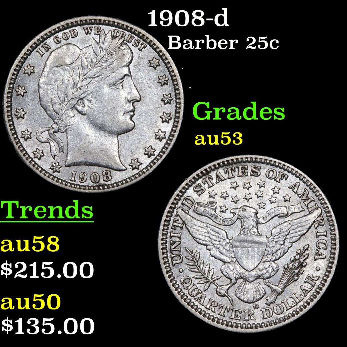 1908-d . . Barber Quarter 25c Grades Select AU.