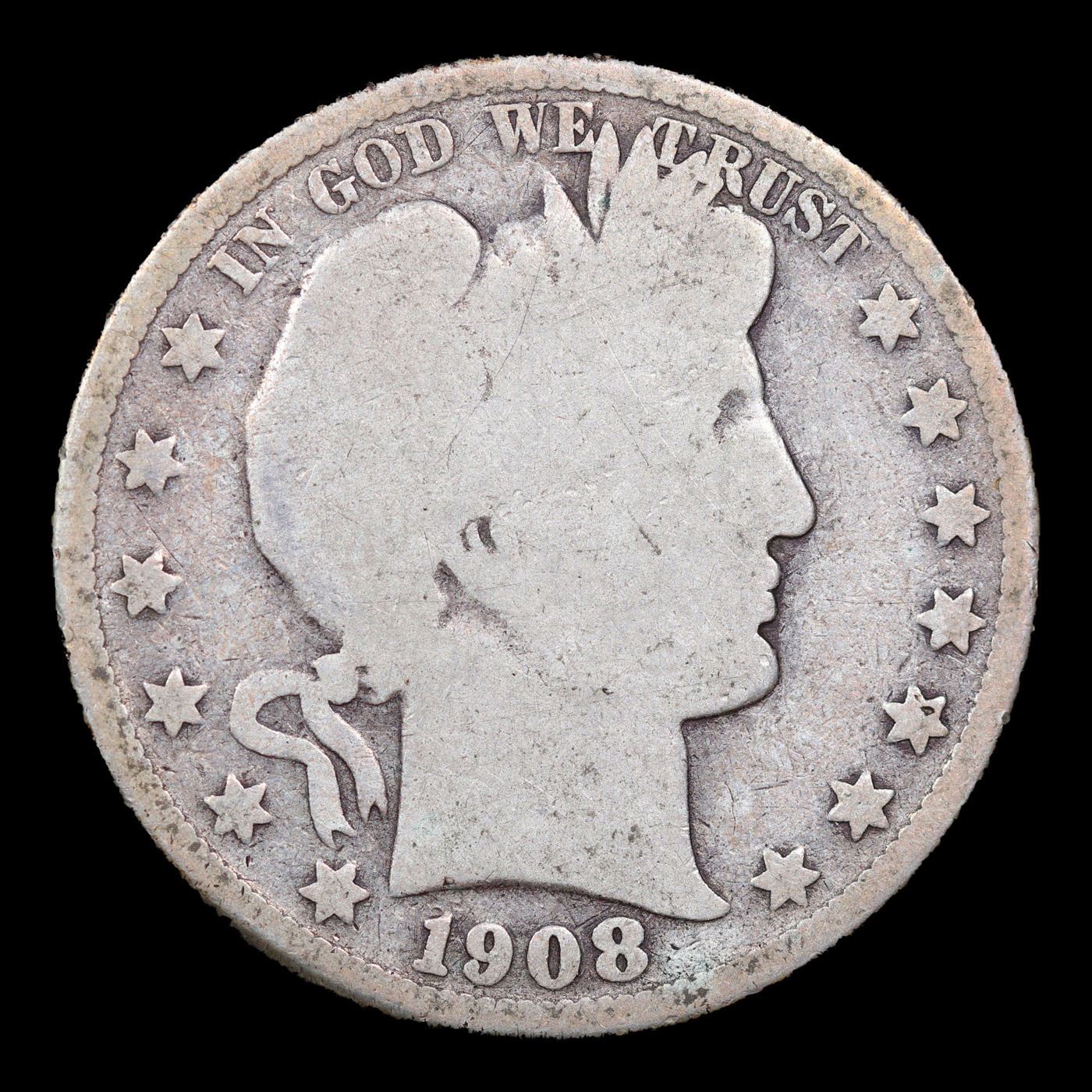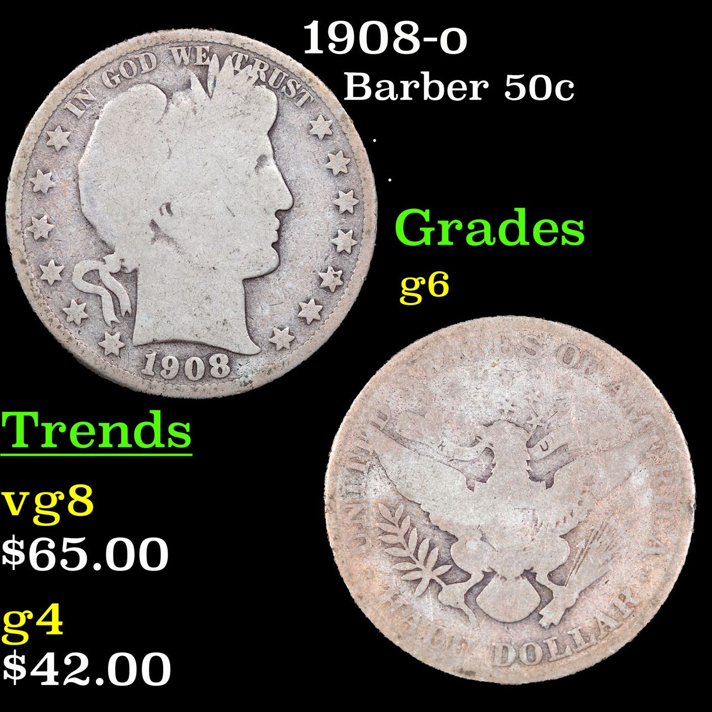 1908-o Barber Half Dollars 50c Grades g+