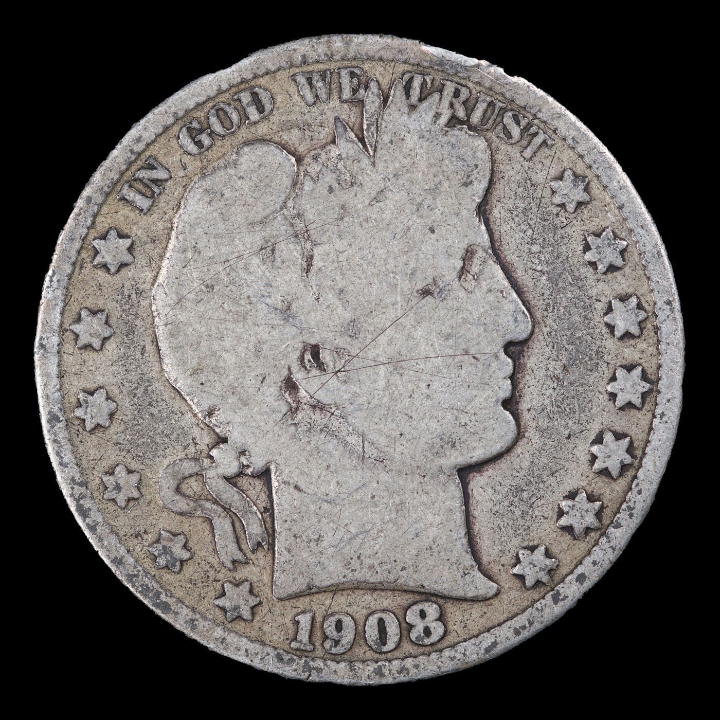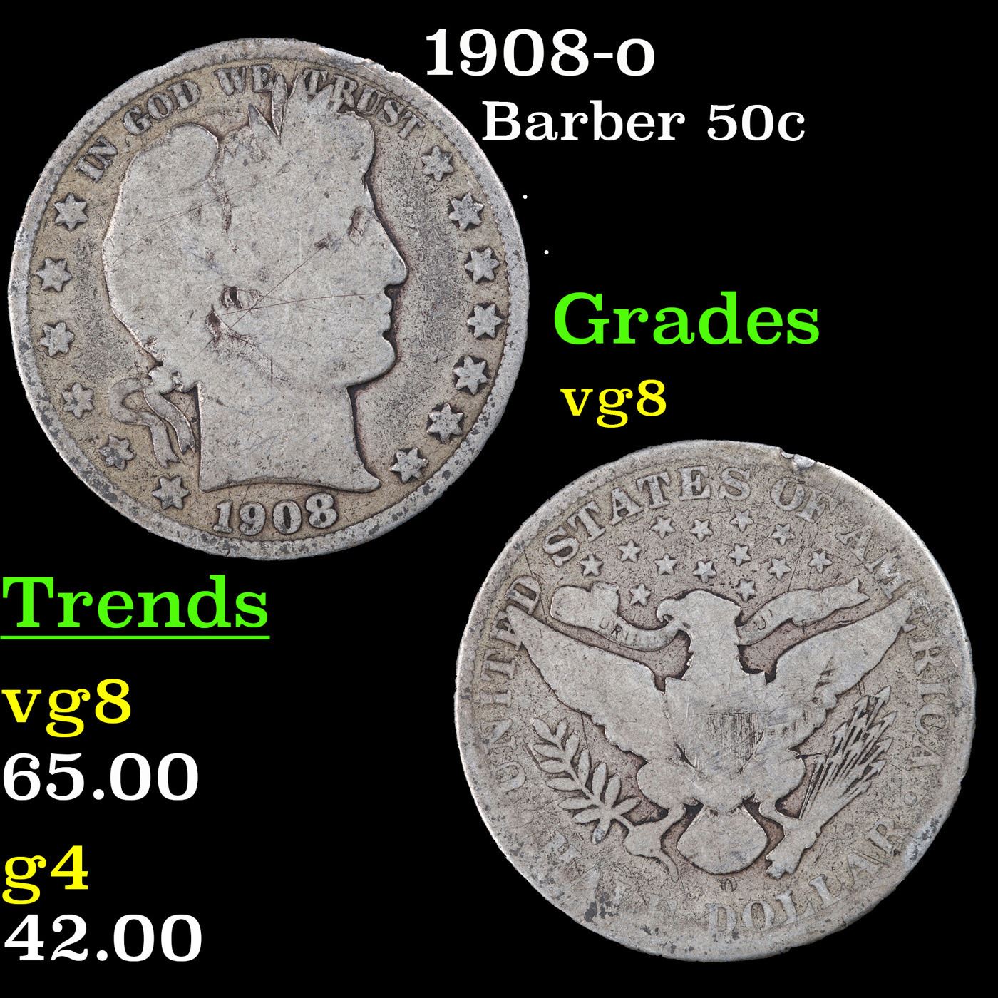 1908-o Barber Half Dollars 50c Grades vg, very good.