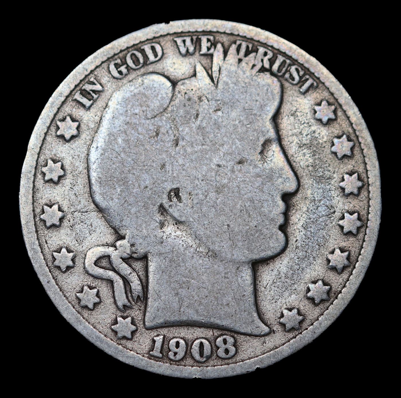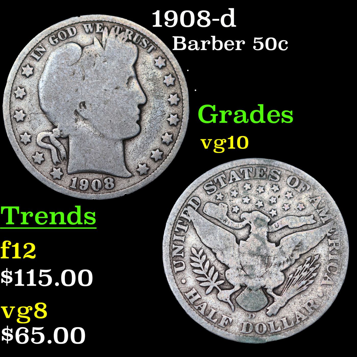 1908-p Barber Half Dollars 50c Grades vg+.