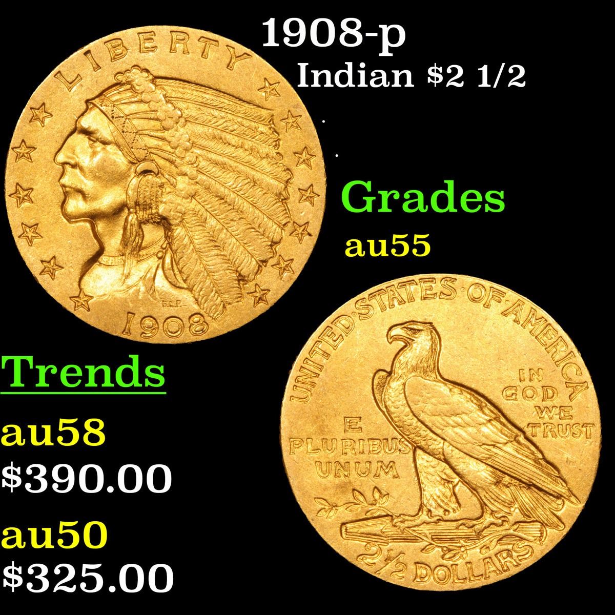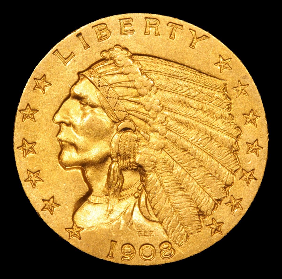 1908-p . . Gold Indian Quarter Eagle $2 1/2 Grades Choice AU.