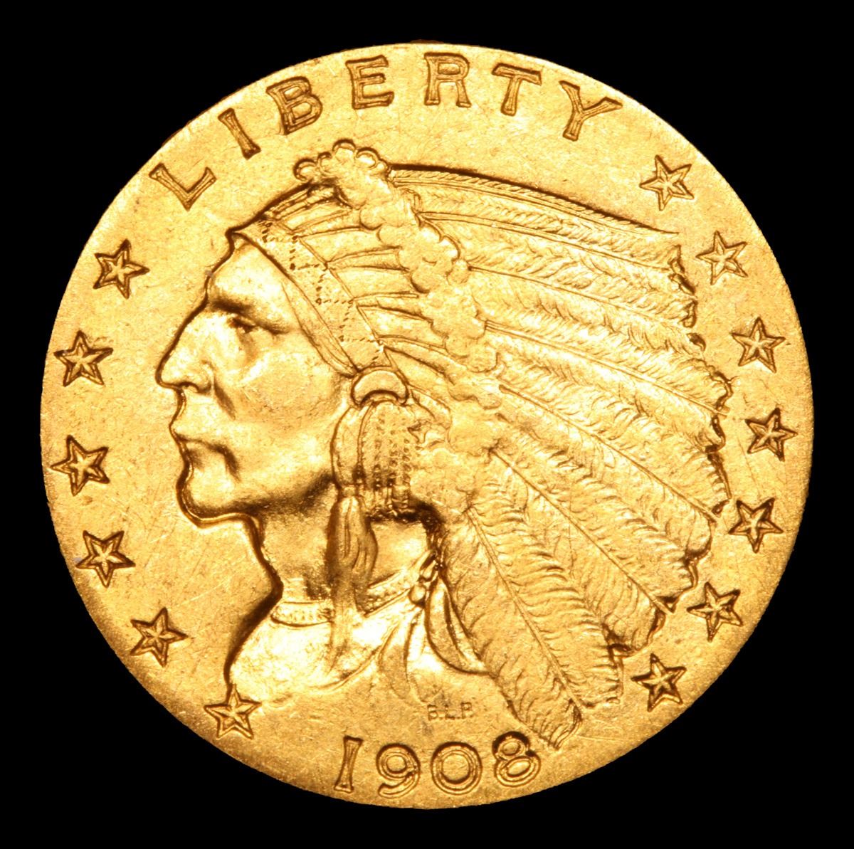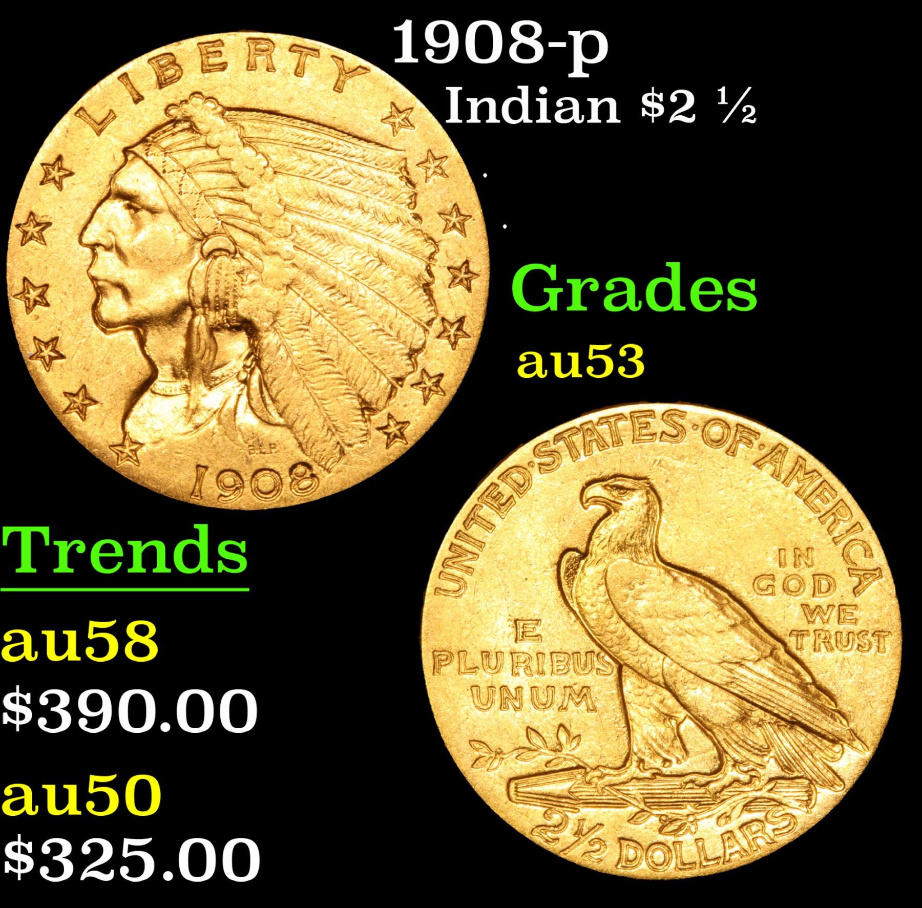1908-p . . Gold Indian Quarter Eagle $2 1/2 Grades Select AU.