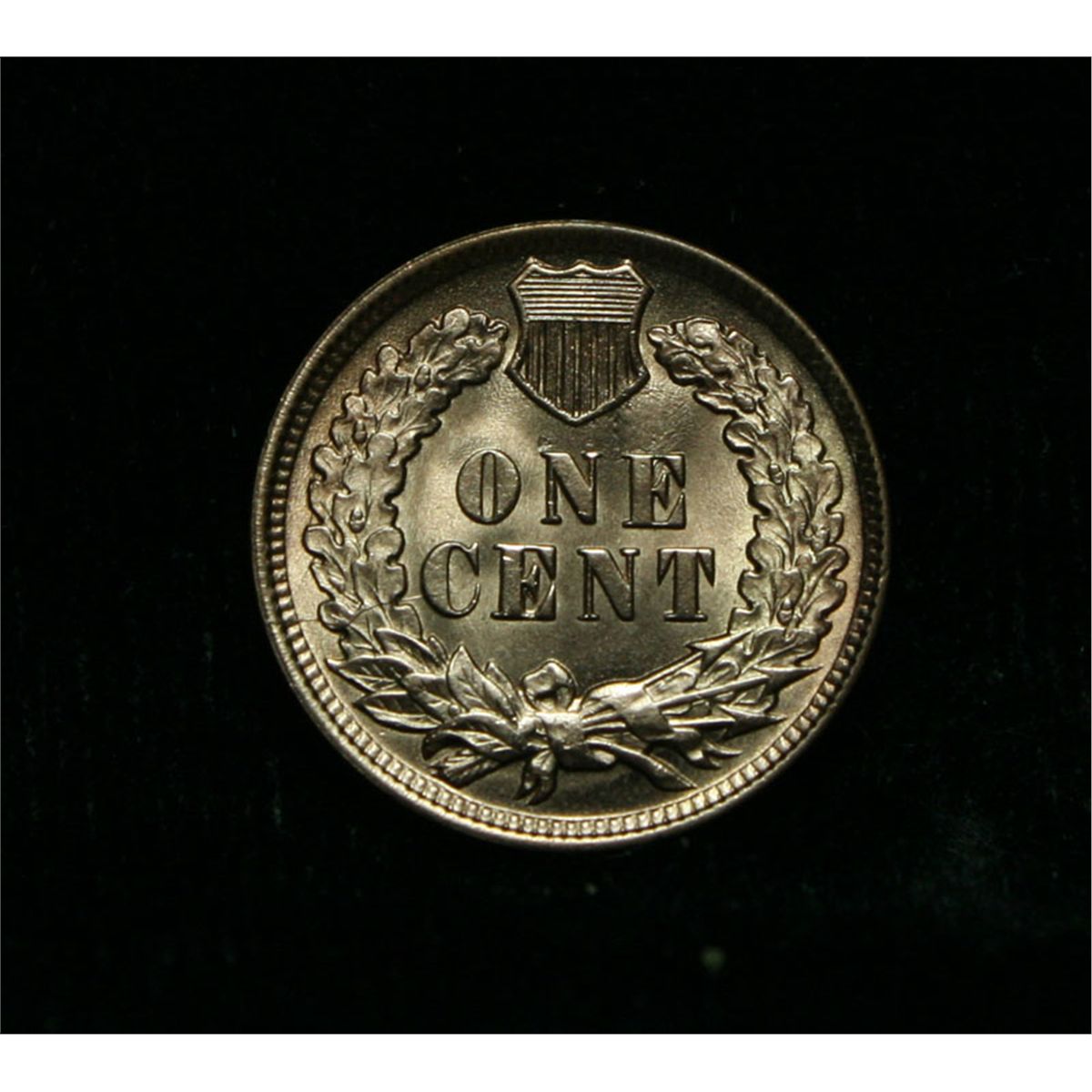 Stunning Indian Cent. Beautiful Color. It has beautiful luster, near mark free and has an interesting die break on the reverse. PCGS's Price Guide lists an ms65 RD at $550 and NGC's Price Guide lists an ms65 RD at $525. The Wholesale Greysheet only lists RB not full RD. Estimated Value $400.