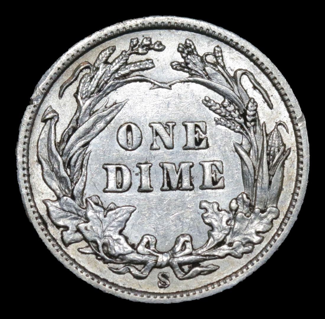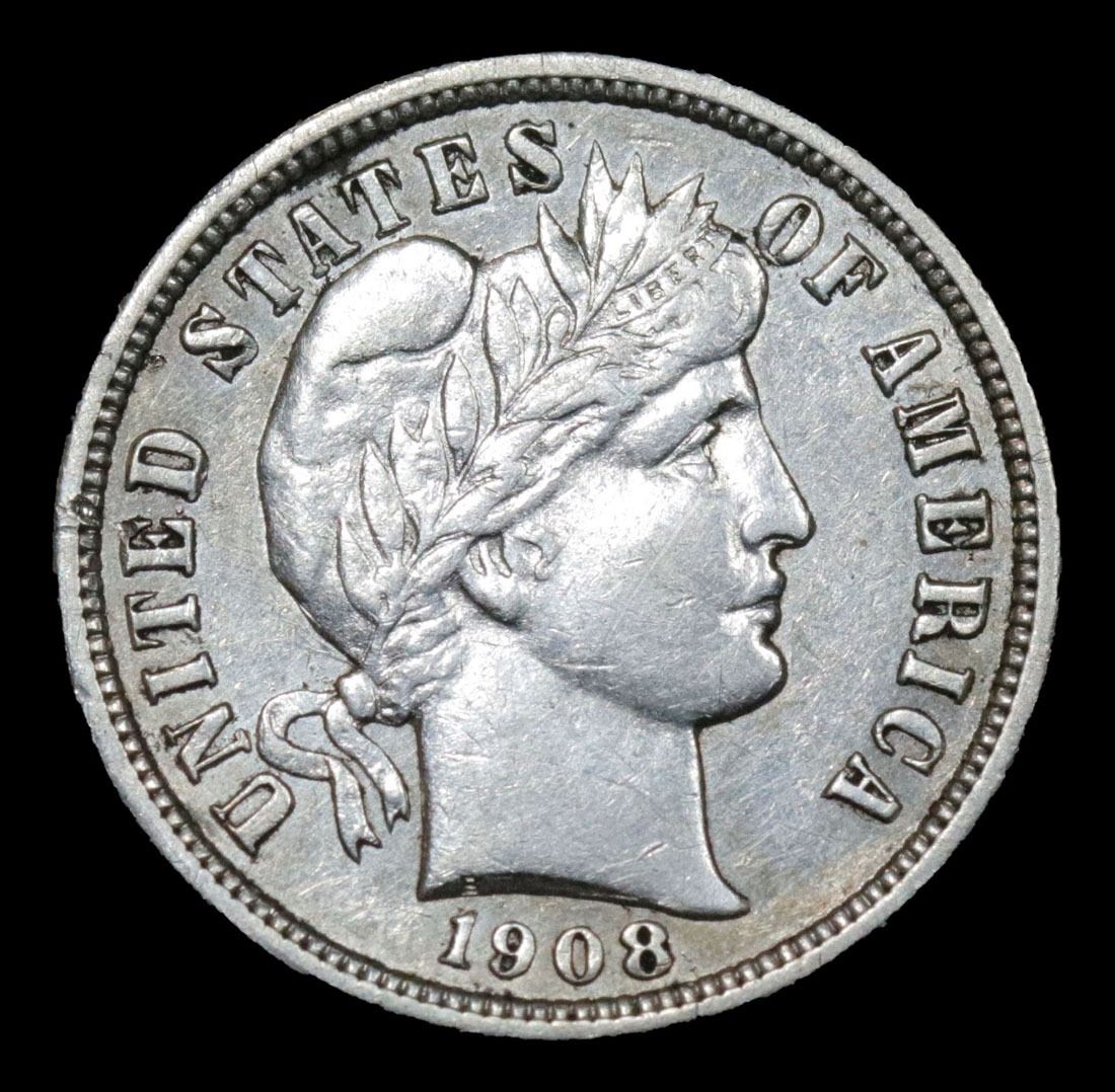 1908-s . . Barber Dime 10c Grades Select AU.  A much better date!!
