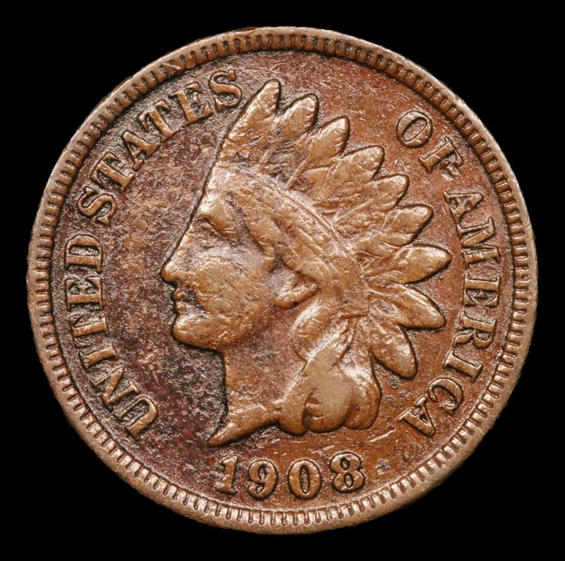 1908-s Key Date To Series . Indian Cent 1c Grades vf++. very scarce. Per PCGS :"The 1908-S Indian cent is the third lowest mintage circulation strike Indian cent. The only two other lower mintage coins in the series are the 1877 and the 1909-S, with the latter being the lowest mintage in the entire series." also PCGS estimates only 3000 survive in all grades