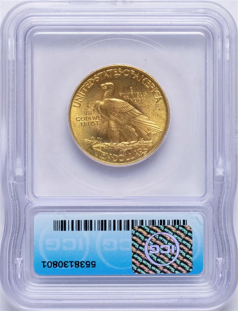 One 1908 with Motto $10 Indian Head Eagle Gold Coin ICG MS64. ICG Certified.