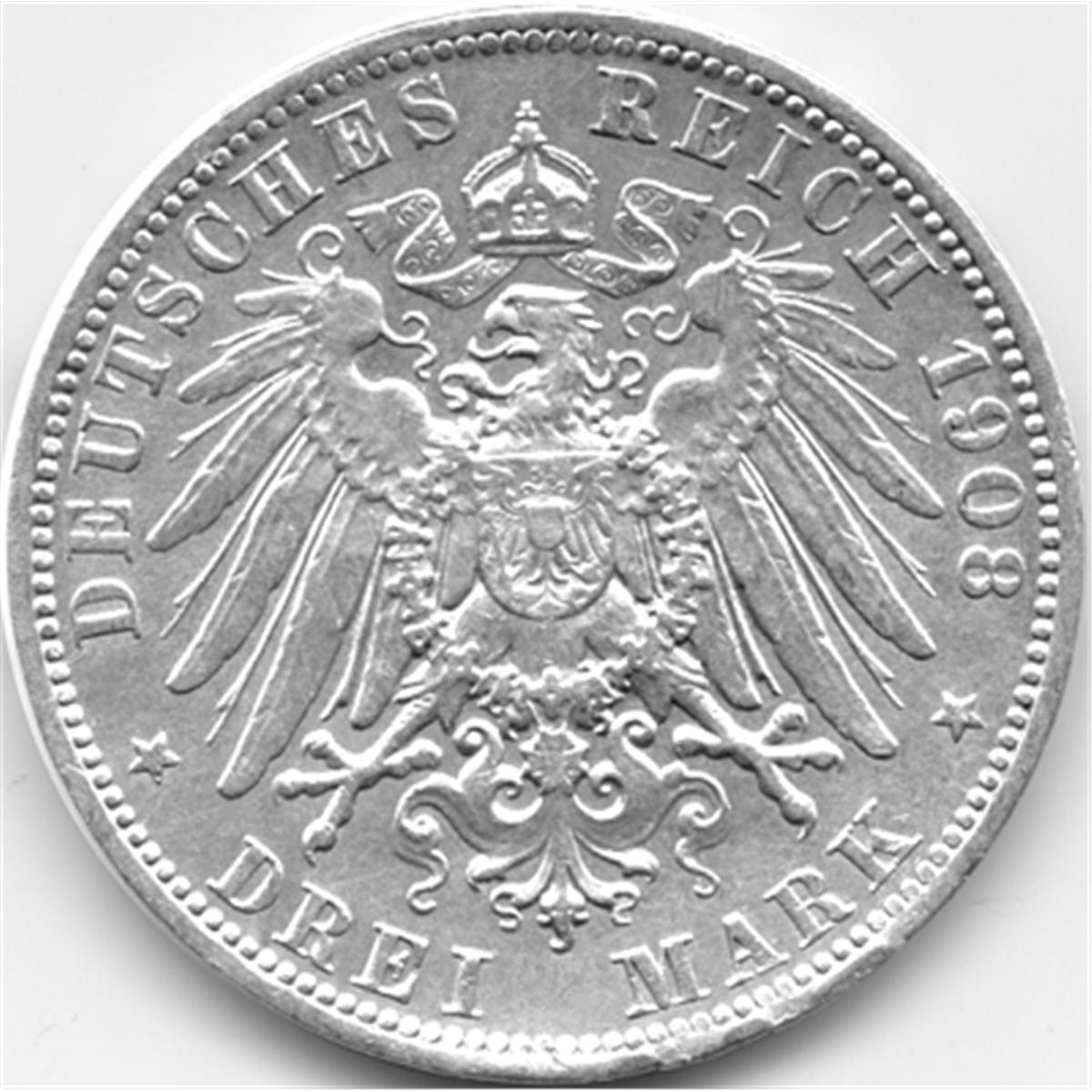 1908A SILVER PRUSSIA 3 MARKS-UNC