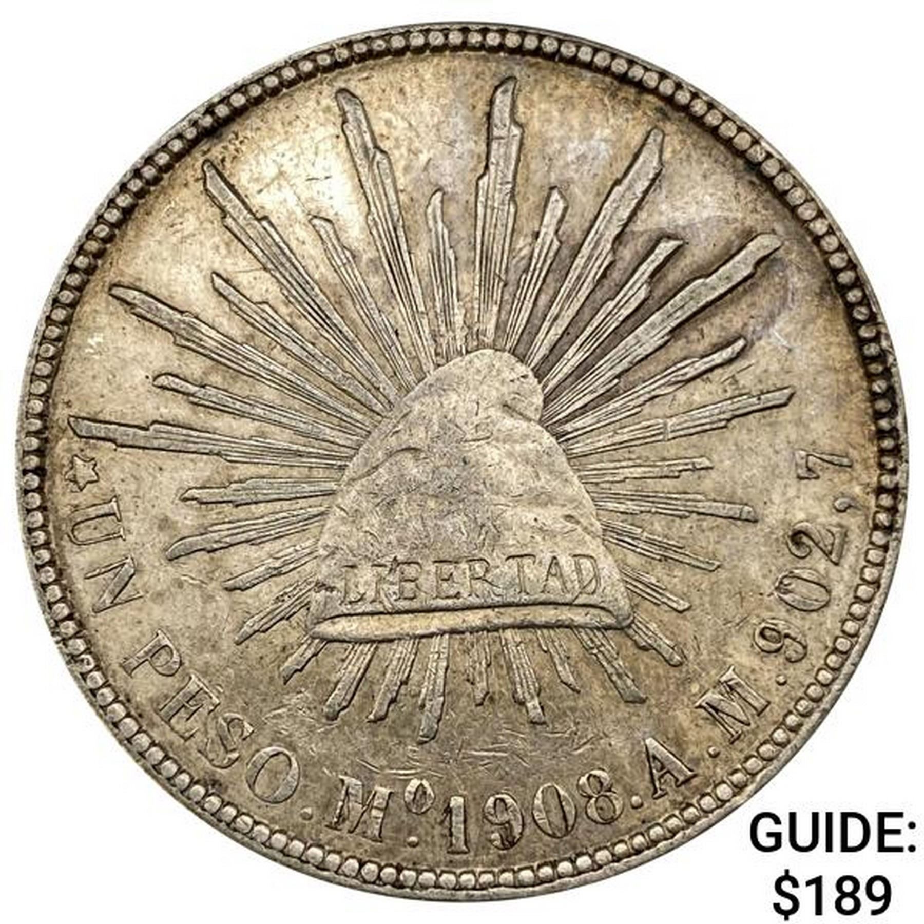 1908Mo AM Mexico Silver Peso CHOICE AU