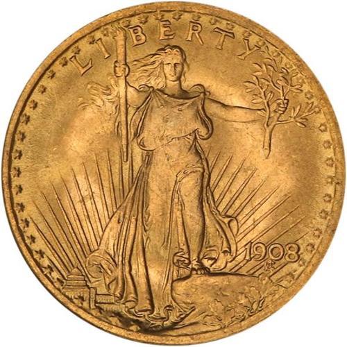 <b>1908NM $20 St Gaudens. Wells Fargo Nevada Gold. NGC graded MS67.</b> A bright coin soaking up mint glow on gold surfaces with nothing to censor it from its refined grade. Something perhaps worth pausing to study is the fact that all devices were struck with the same superb and desirable consistency of this year, that is, sharply by the dies, which then left behind bold elements of detail throughout. A masterpiece in coin preservation.