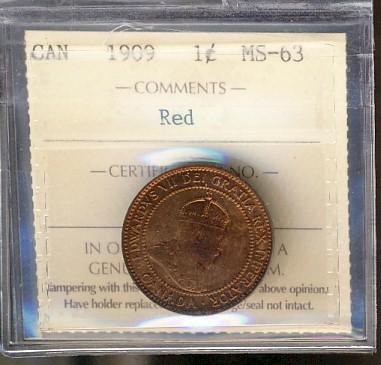 1909 1¢ ICCS MS63RD. Lustrous with burgundy finish.