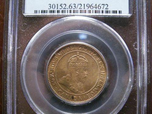 1909 1¢ PCGS MS63 red/brown. 45% red lustre.