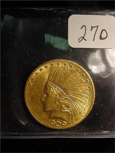 1909 $10.00 Indian Head Gold Coin MS 60 Scratched