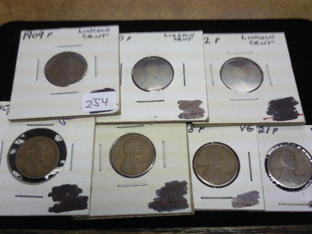 1909,10,12,13,14,18 & 21 LINCOLN CENTS