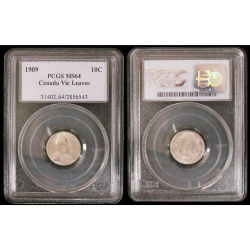 1909 10¢ PCGS MS64 Vict Lvs. A full white and lightly frosted finish.