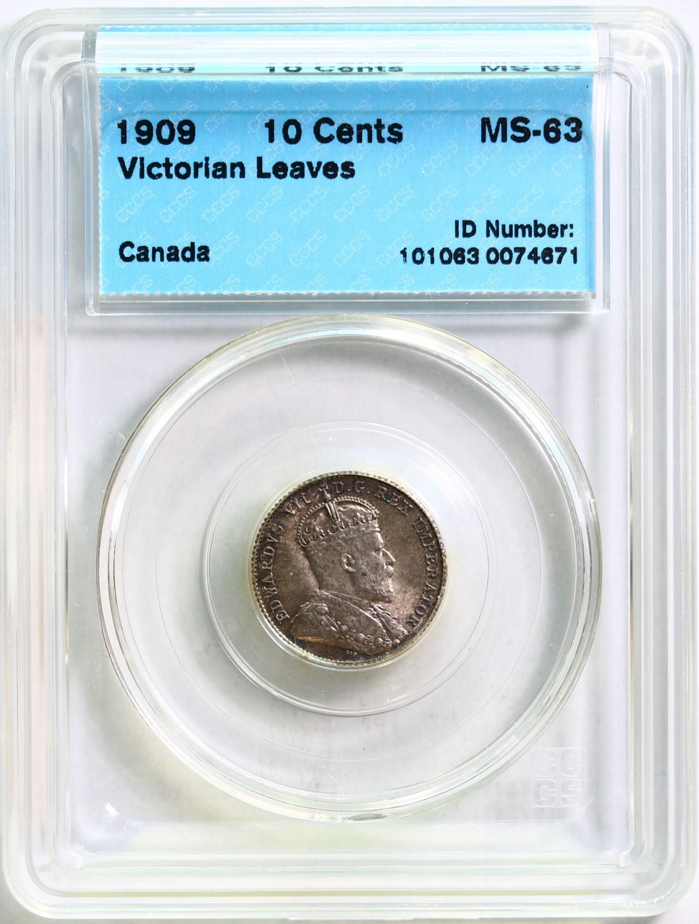 1909 10¢ "Victorian Leaves" CCCS Choice Mint State-63 Light tone over full underlying lustre. Scarce variety.