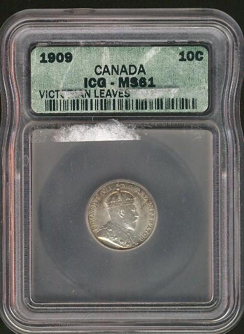 1909 10¢ Victorian Lvs ICG MS61. Attractive.