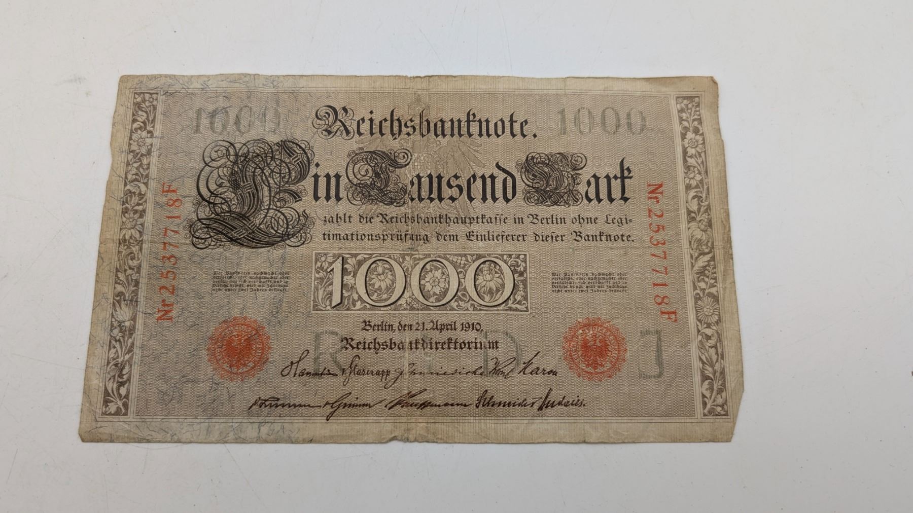 This is a 1,000 Mark banknote issued by the German Reichsbank, dated April 21, 1909. The Reichsbank was the central bank of the German Empire and later the Weimar Republic. This particular note is from the period before World War I, when the German Mark was still a stable currency.