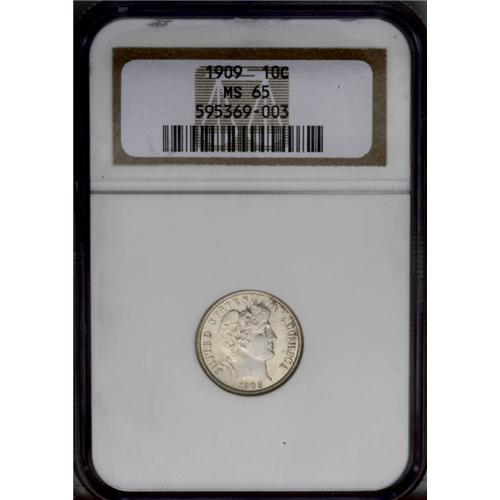 <B>1909<10C> MS65 NGC.</B></I> Sultry, shimmering surfaces on which a bold strike appears. Some frosting shows on the devices, with virtually no contact marks or hairlines and just a hint of natural patina. This is a coin very close to perfection in strike and condition. Not a rare date, but in a very desirable condition. Census: 28 in 65, 11 finer (3/06).