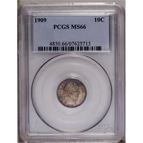 1909 10C MS66 PCGS. Medium intensity multi-colored ton 1909[10C] MS66 PCGS.