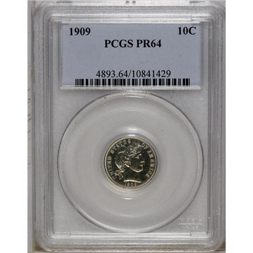 <B>1909 10C PR64 PCGS.</B></I> Each side of this practically untoned near-Gem exhibits a degree of contrast, though not enough to warrant a designation. A few light hairlines are present in the fields.<BR><BR><b>Shipping:</b> Coin/Currency (<a target="_blank" href="http://www.heritageauctions.com/common/shipping.php">view shipping information</a>)