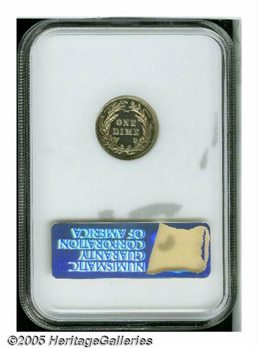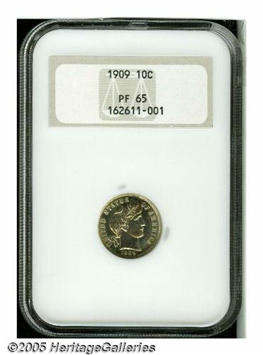 <B>1909<10C> PR65 NGC.</B></I> Highly attractive proof toned in ripe-plum, gold and watery-crimson. This example has watery surfaces and no distractions worthy of note.