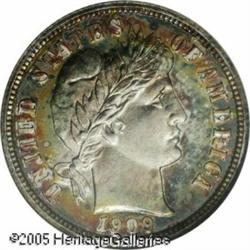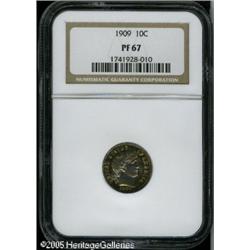 <B>1909 10C PR67 NGC.</B></I> An amazing Gem quality example with light silver brilliance at the center of the obverse, surrounded by intermingled iridescence. The reverse is mostly brilliant with only a trace of champagne color. Population: 17 in 67, 2 finer (1/05). Lot:6320