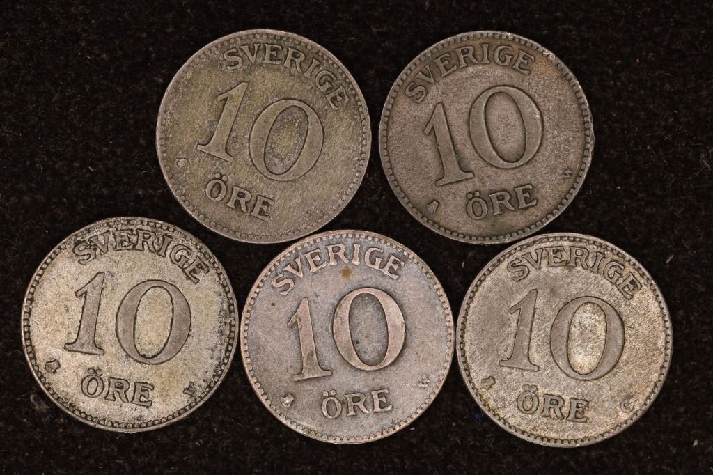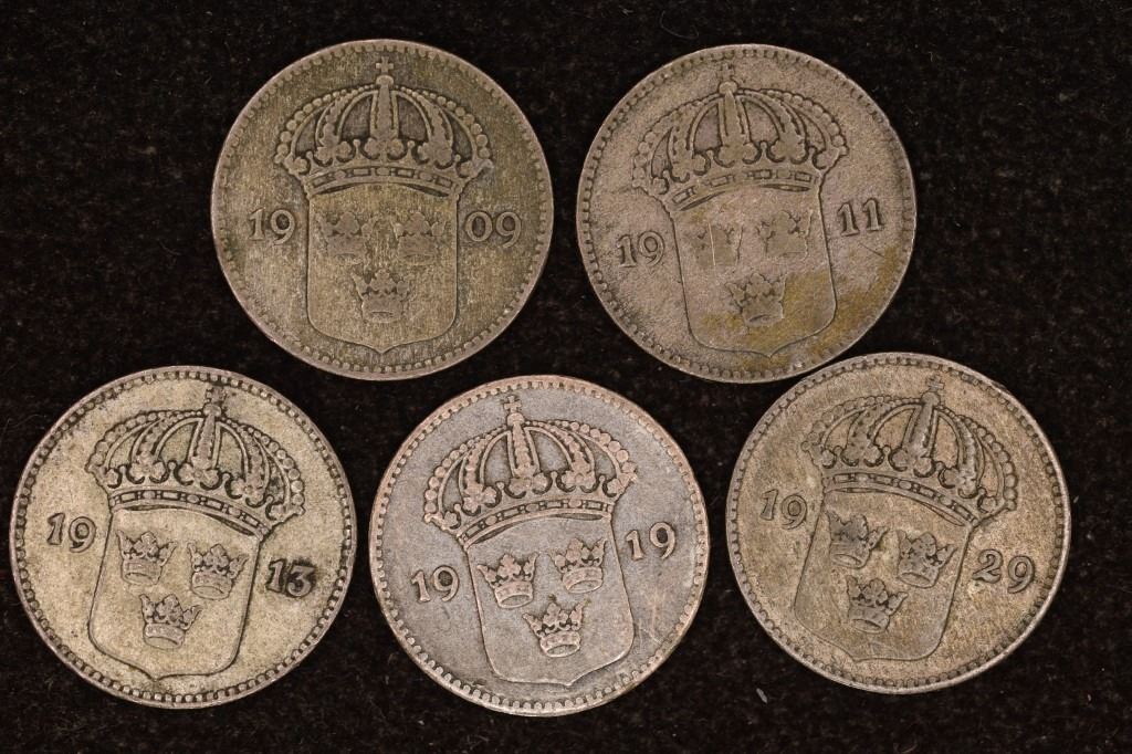 1909, 11, 13, 19 & 1929 SWEDEN SILVER 10 ORE
