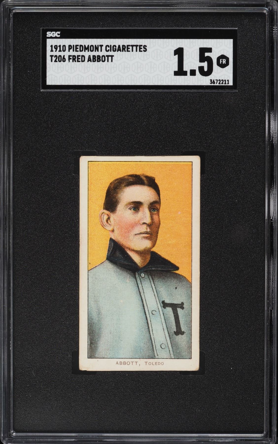 Minor league catcher Fred Abbott bounced around the lower leagues for a while, getting his cup of coffee in the bigs over 160 games from 1903 to 1905. Here he's a member of the Toledo Mud Hens where he spent 5 seasons. Graded 1.5 FR by SGC thanks to some writing on the back, but the front is super clean and it presents very well!